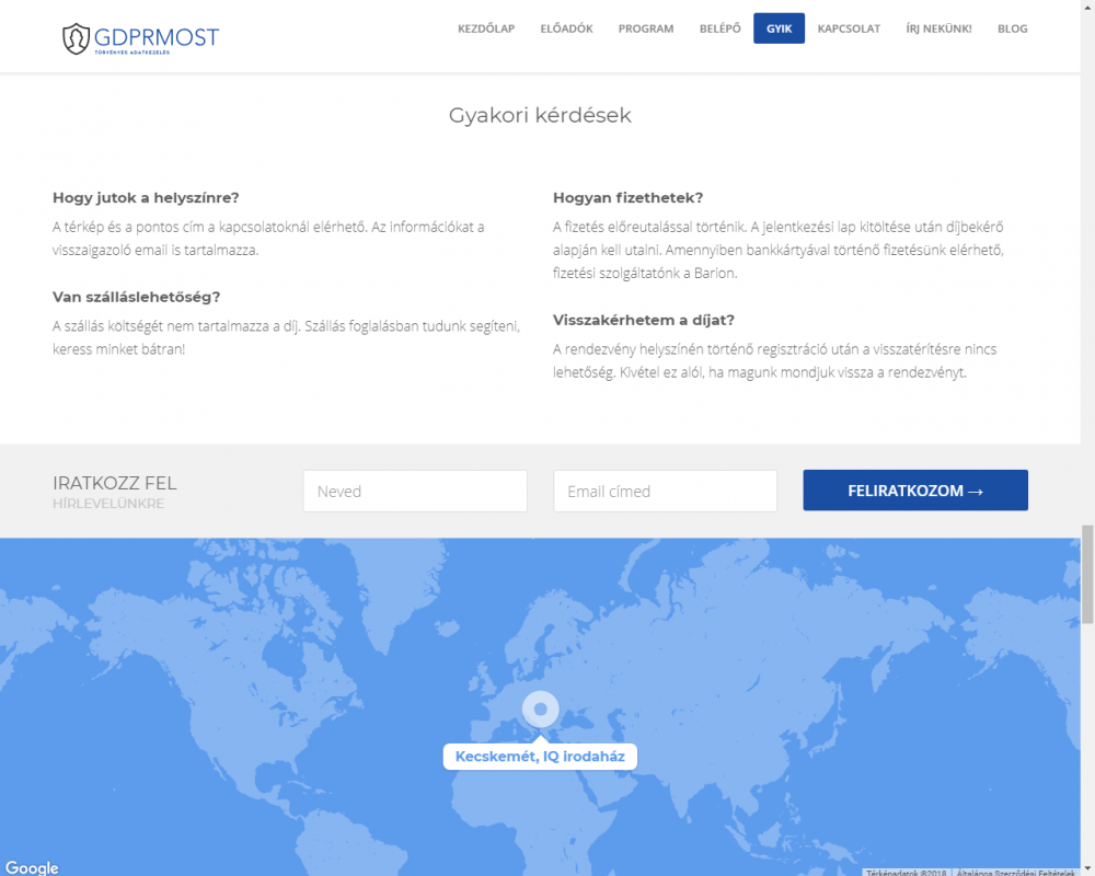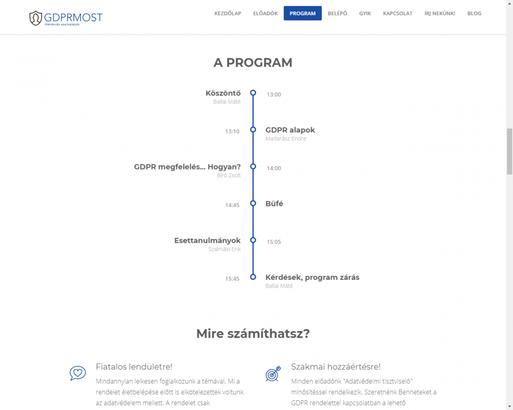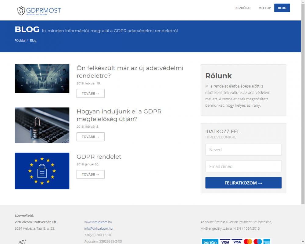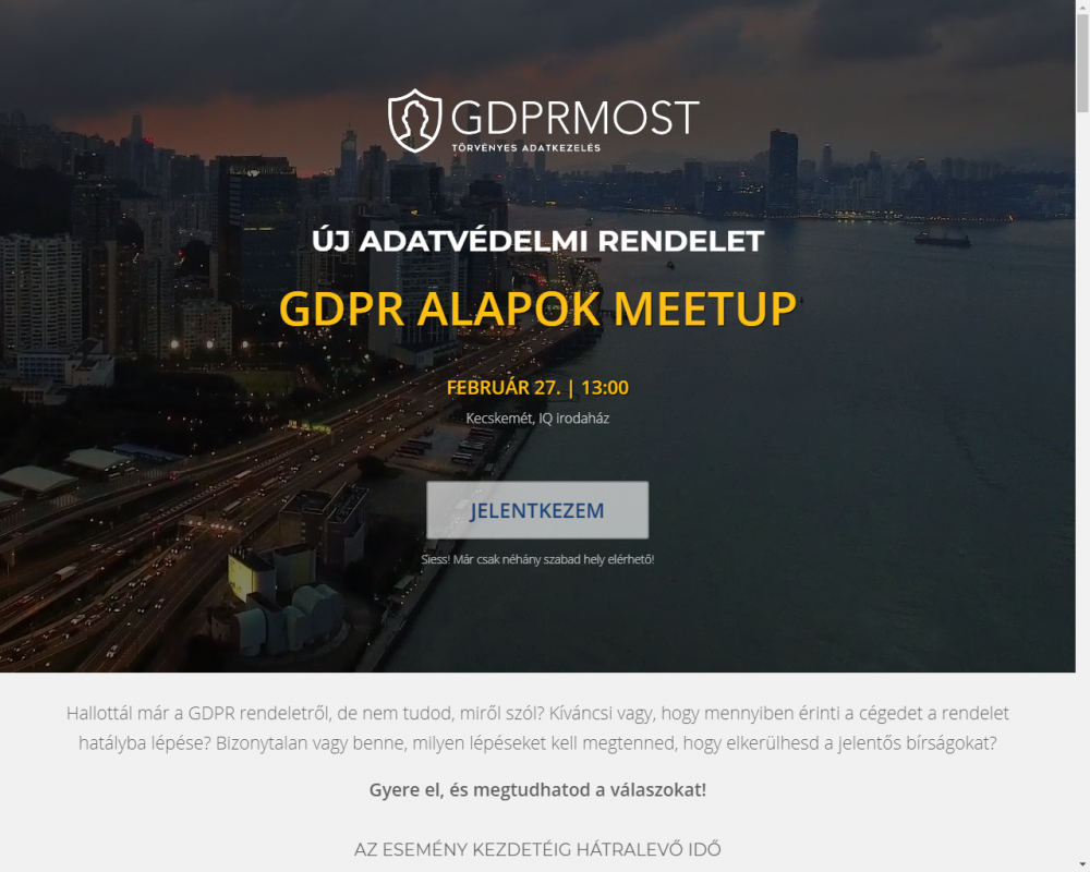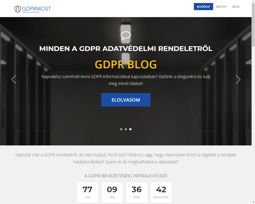 GDPRMOST oldalunkon elérhetőek az új adatvédelmi rendelettel kapcsolatos információk, előadásaink időpontjai. Személyes tanácsadással és oktatással segítünk a törvényi előírásoknak megfelelni, ami GDPR kapcsán szinte minden vállalkozást érint.