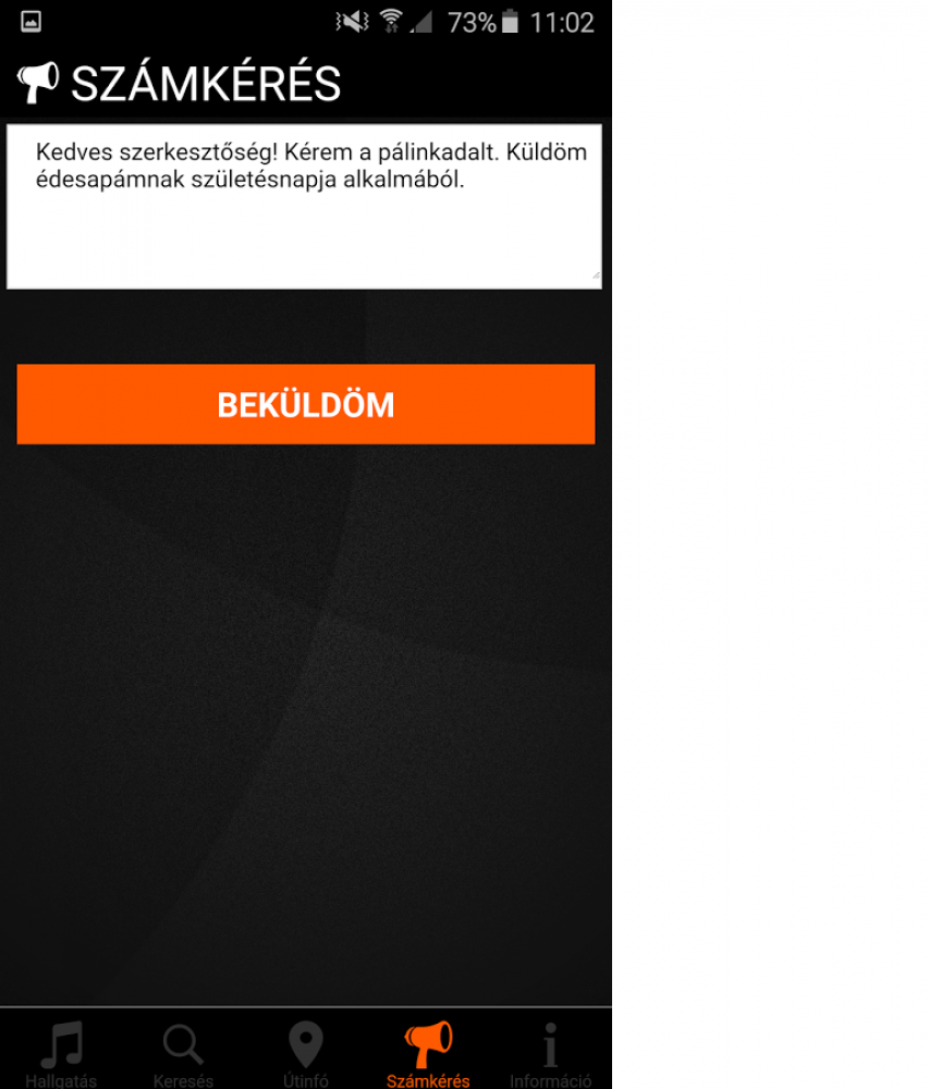 * Számkérés: ha éppen kívánságműsor van, az alkalmazáson keresztül is kérhet számot ismerőseinek, szeretteinek