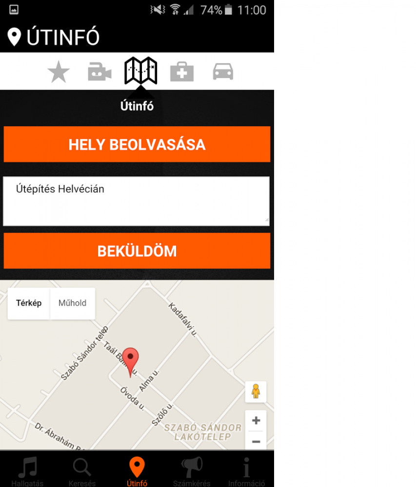 * Útinfó beküldés: úton van? Küldje be az alkalmazáson keresztül, ha különleges eseménnyel találkozik. Beküldheti a pontos GPS koordinátát is. Az információkat megosztjuk a többi hallgatóval (rendőr, traffi, útinfó, torlódás, baleset)