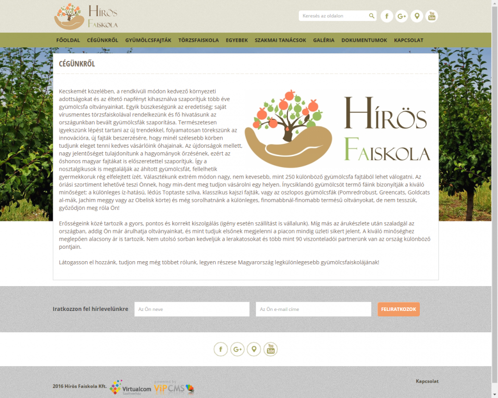 Kecskemét közelében, a rendkívüli módon kedvező környezeti adottságokat és az éltető napfényt kihasználva szaporítják több éve gyümölcsfa oltványaikat. Egyik büszkeségük az eredetiség; saját vírusmentes törzsfaiskolával rendelkeznek és fő hivatásuk az országunkban bevált gyümölcsfák szaporítása.