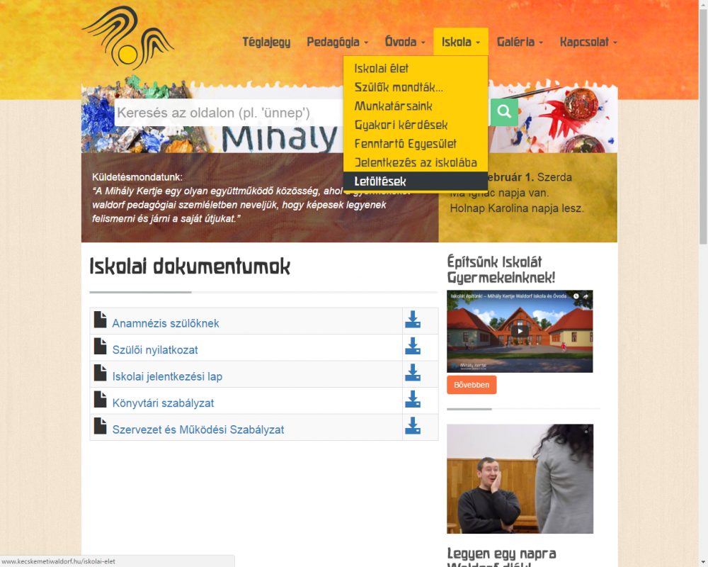 Az oldal elérhetősége: http://www.kecskemetiwaldorf.hu/