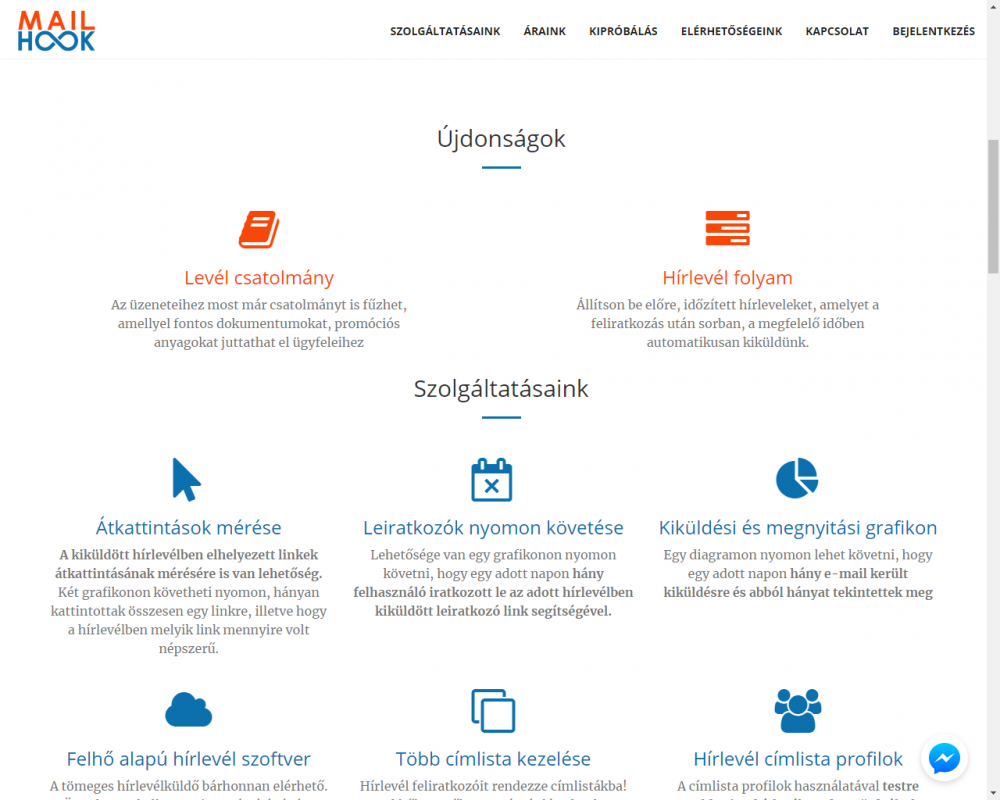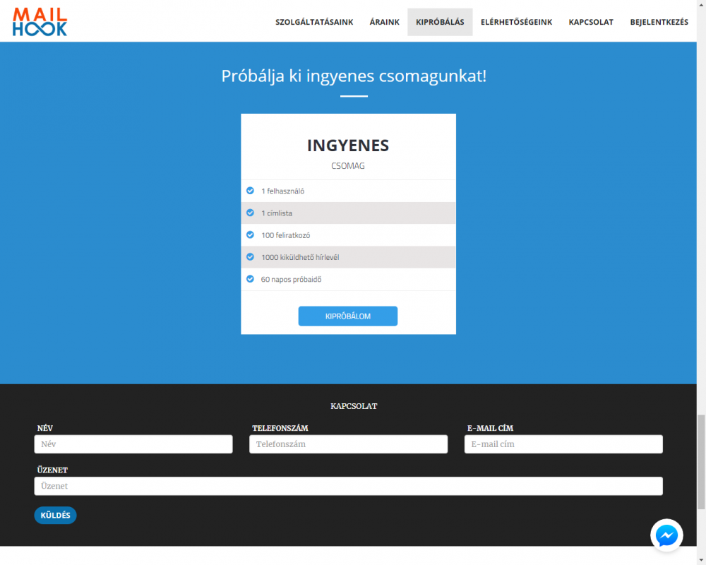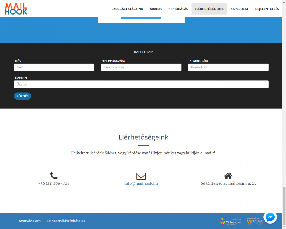A weboldal elérhetősége:  http://mailhook.hu/